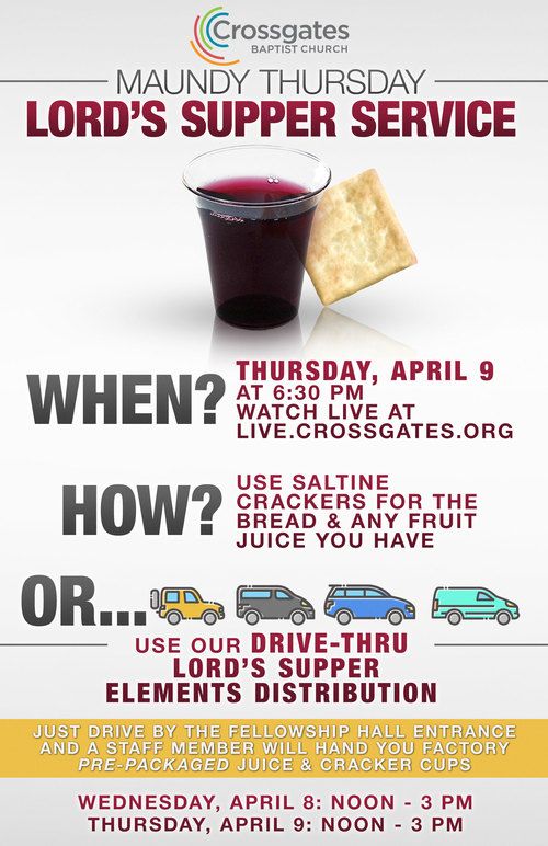 On Thursday, April 9, at 6:30 PM, as we take the Lord’s Supper together as a church family, we are entering into the finished work of Jesus on the Cross